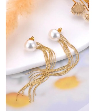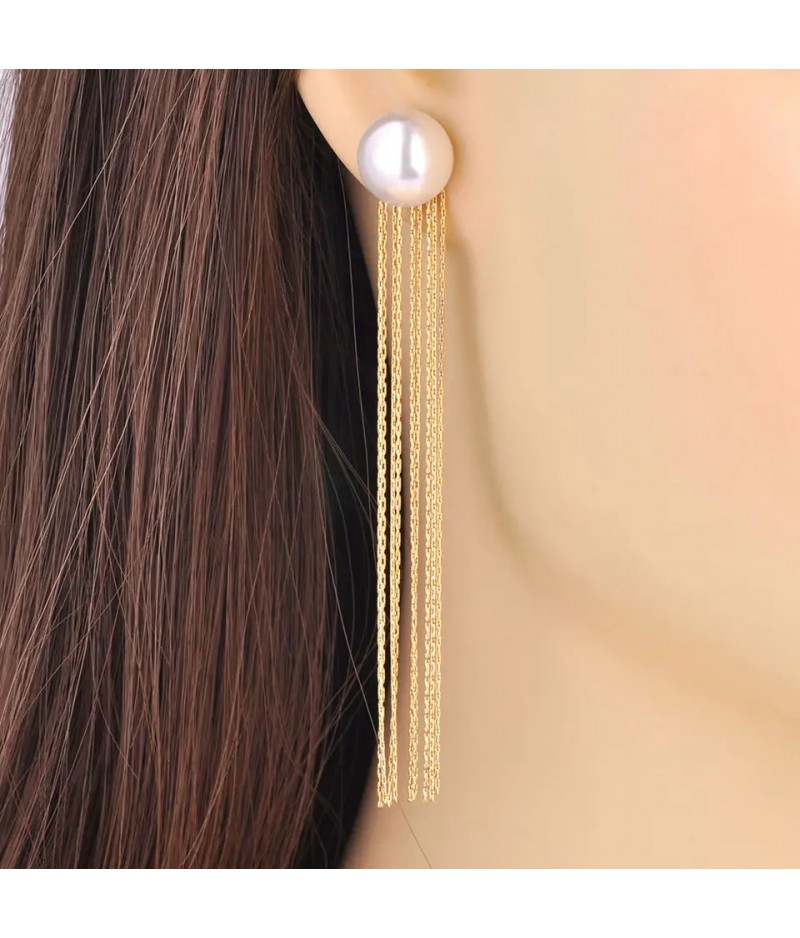 Aretes de acero de 8 cms de largo con una perla en la parte superior